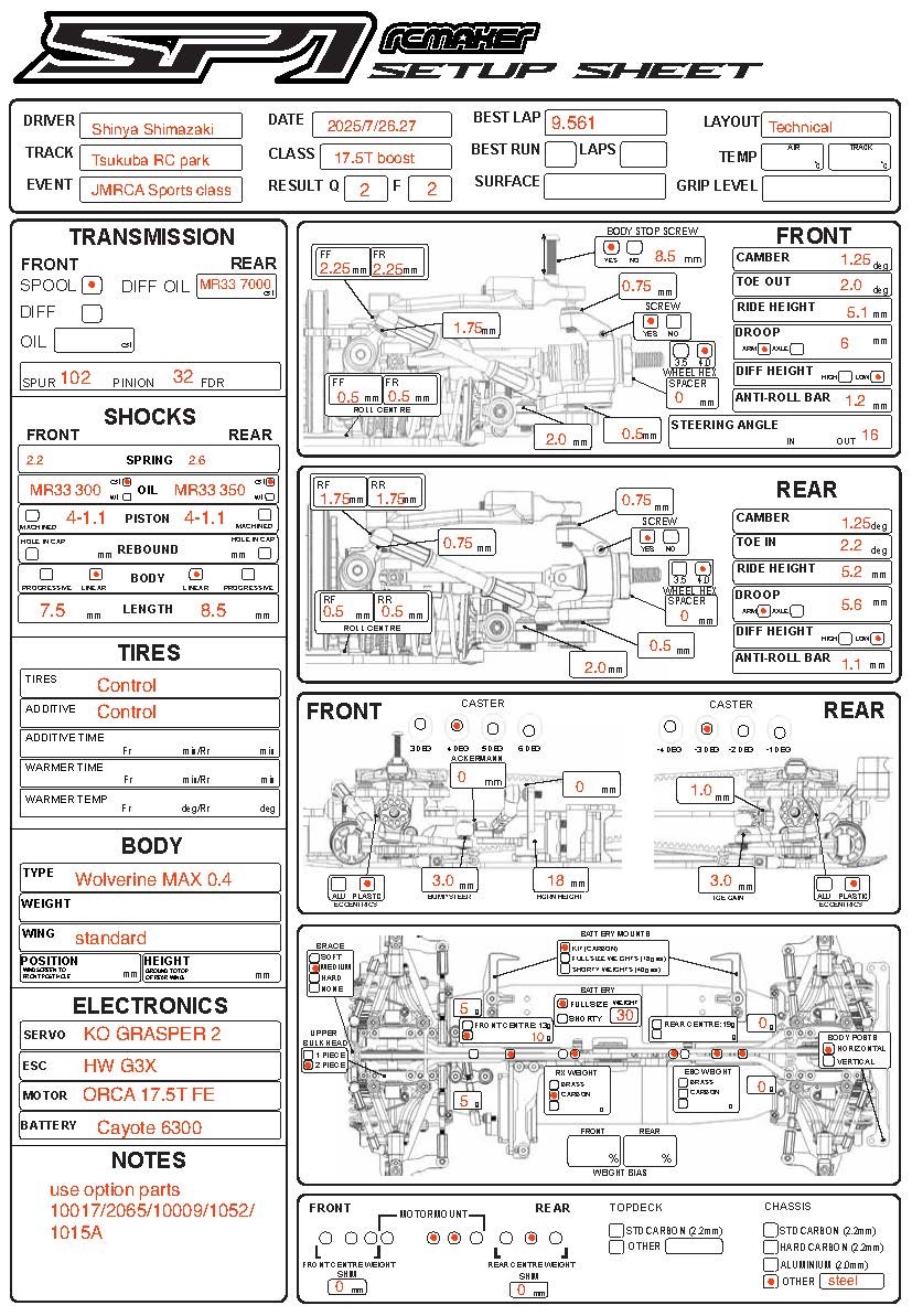 全日本選手権セットアップシート公開! | ZEROTRIBE WEBSHOP