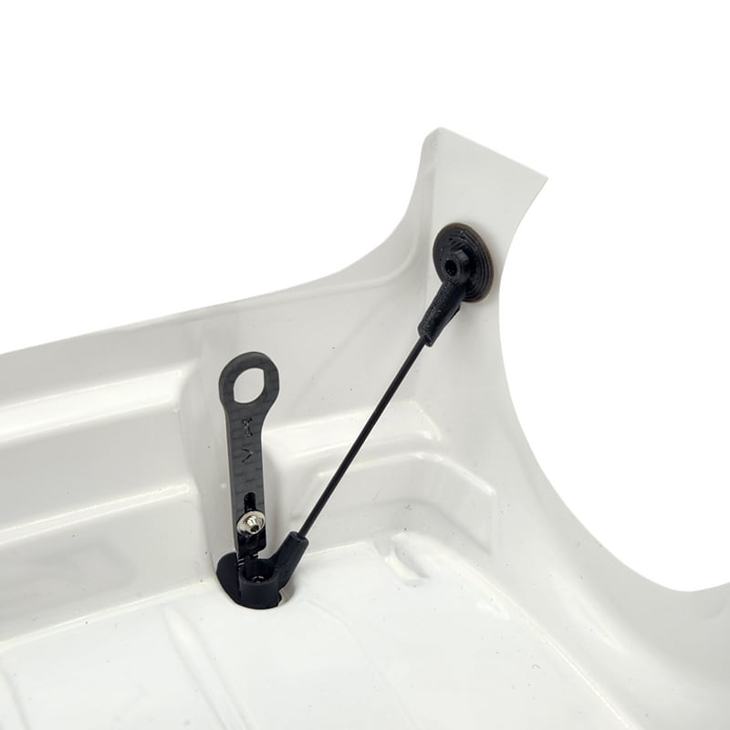 このシステムをボディマウントに取り付けるには、付属のM3x6ボタンヘッドネジをマウント下側から挿入します。1.5mmカーボンロッドが上部と下部を接続する構造になっており、 下部セクションは柔軟な素材でプリントされ、衝撃を吸収。カーボンロッドの破損を防ぎます。