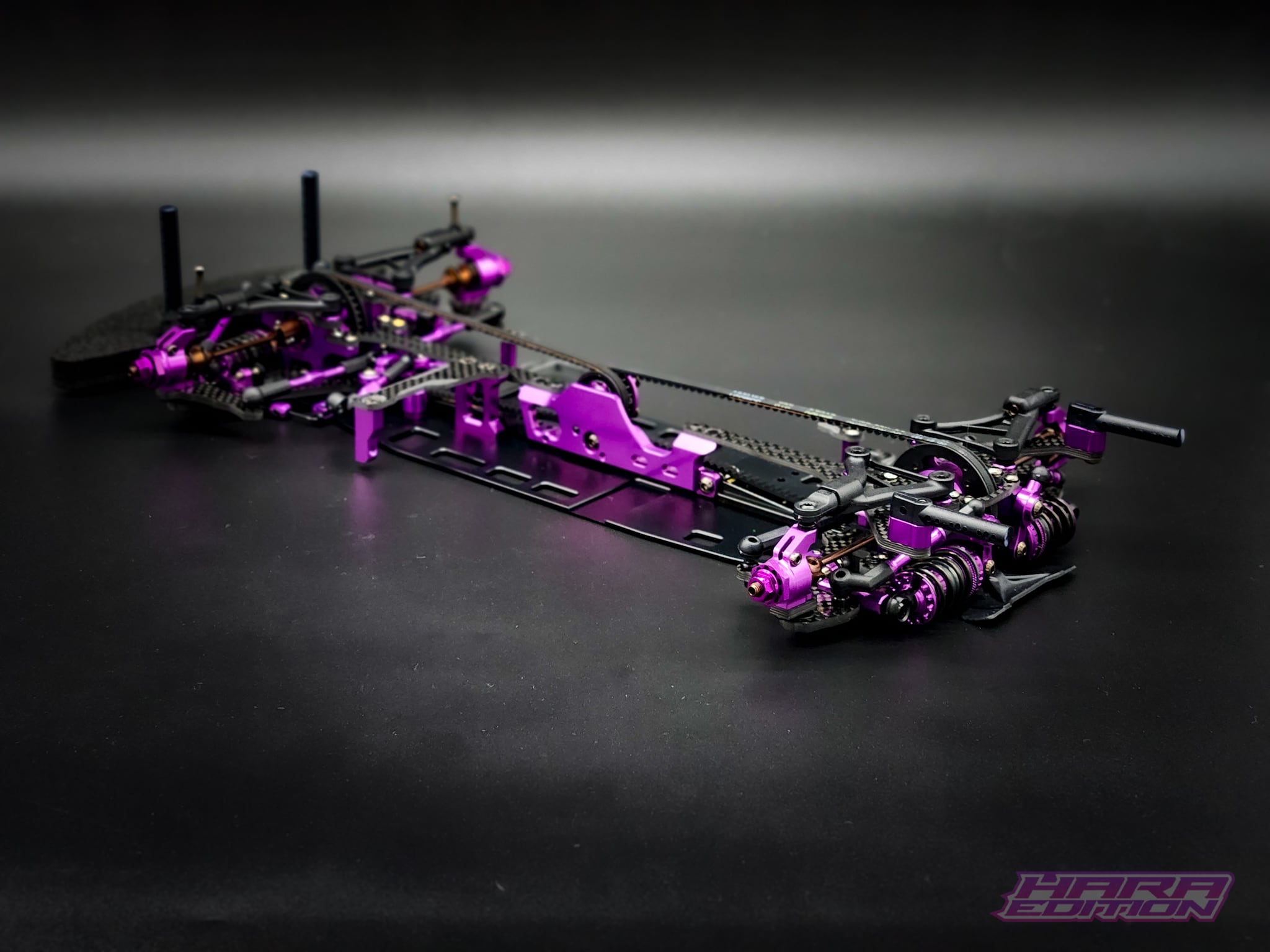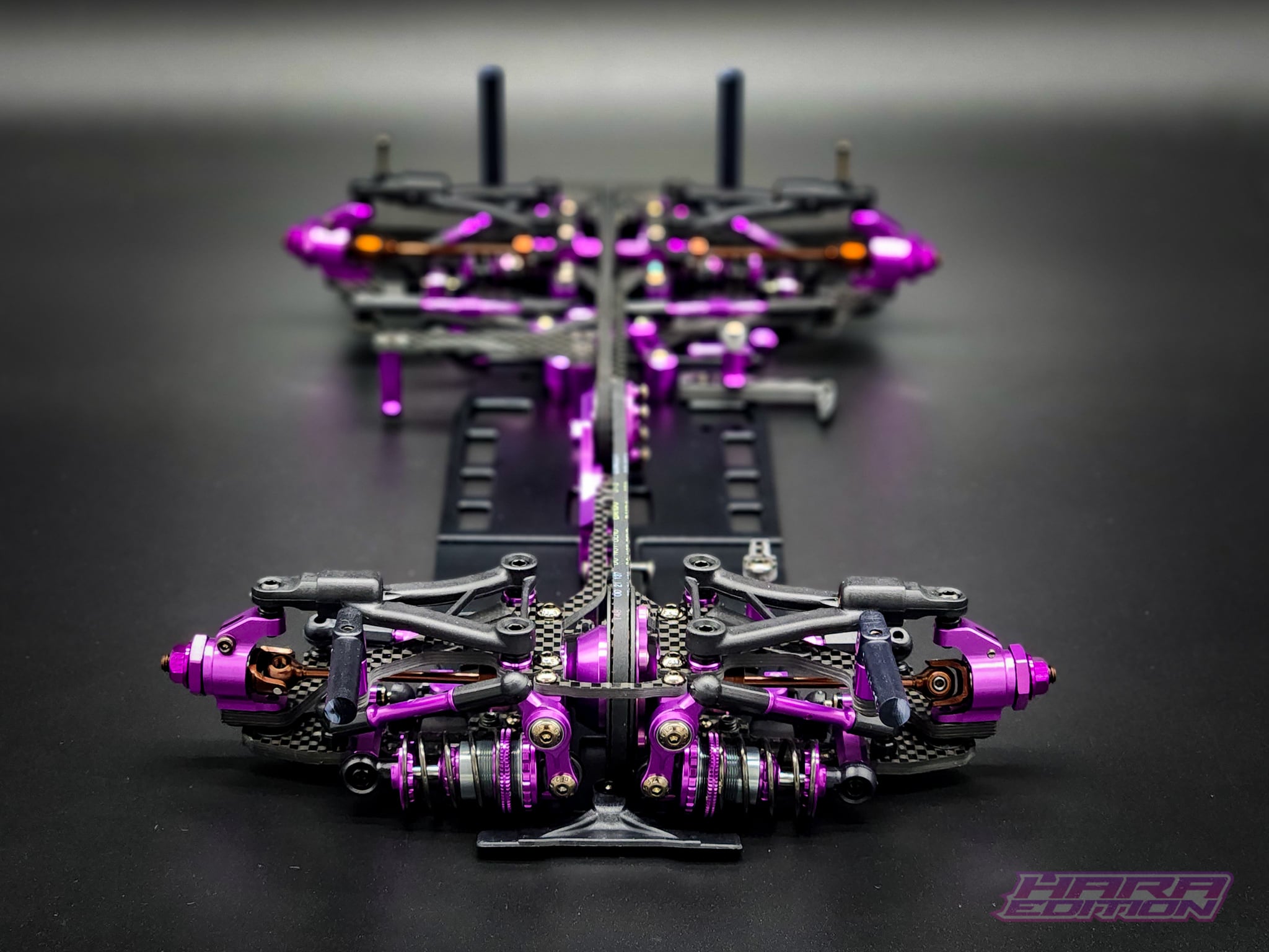 コレクターズアイテムとしての地位を超え、SP1 Hara Editionは超低重心(CG)への執拗なこだわりで設計された強力な競技マシンです。設計思想の核心は質量集中化とあらゆる部品の低重心化にあり、革新的な横置き式プッシュロッドショックアブソーバー、19mmの高さのトップデッキ、アンダーアーム式アンチロールバーにその思想が顕著に表れています。その結果、より俊敏な動き、素早い方向転換、そしてコーナーを驚異的な速度で駆け抜ける性能を実現。この限定モデルには、アンチロールバー一式やAXON製スプリングなど貴重なオプションパーツが同梱され、本格的なレーサーにとって箱から出してすぐにトップクラスのパフォーマンスを発揮する一台となっています。