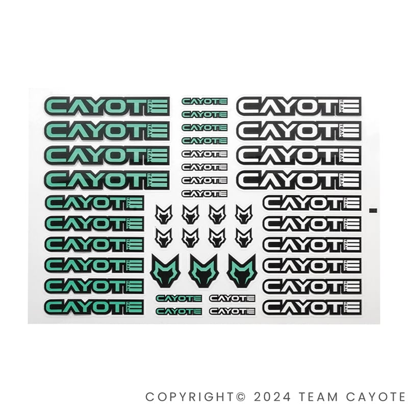 商品説明:チームスピリットをアピールし、ギアを際立たせるCAYOTEのデカールシートです。本デカールシートはCAYOTEの象徴的なカラーリングを採用し、あらゆる表面にフィットする様々なサイズのロゴをご用意いたしました。