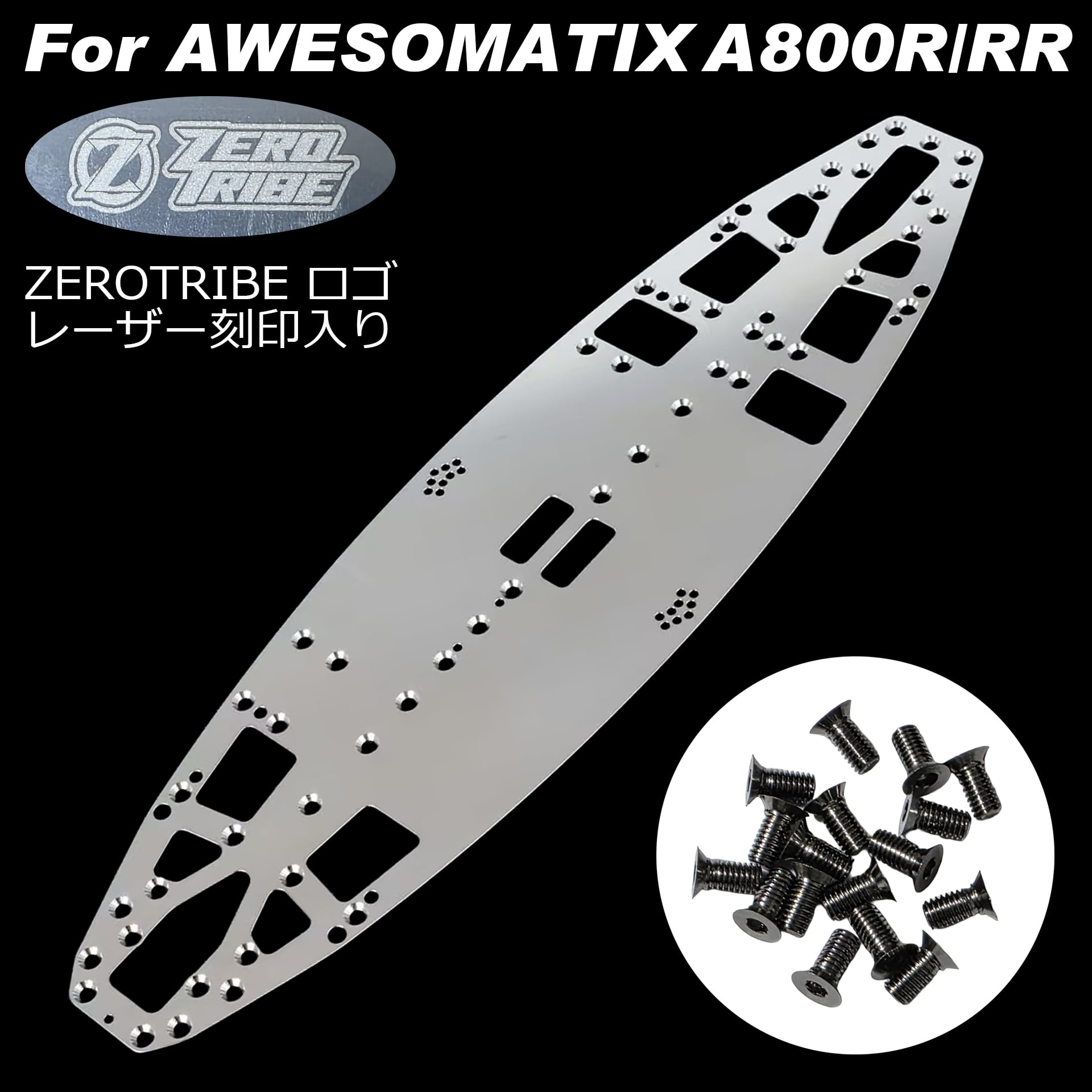 商品説明:WEiRC製 スプリングスチール(ばね鋼)製のシャーシと専用ビスセットです。