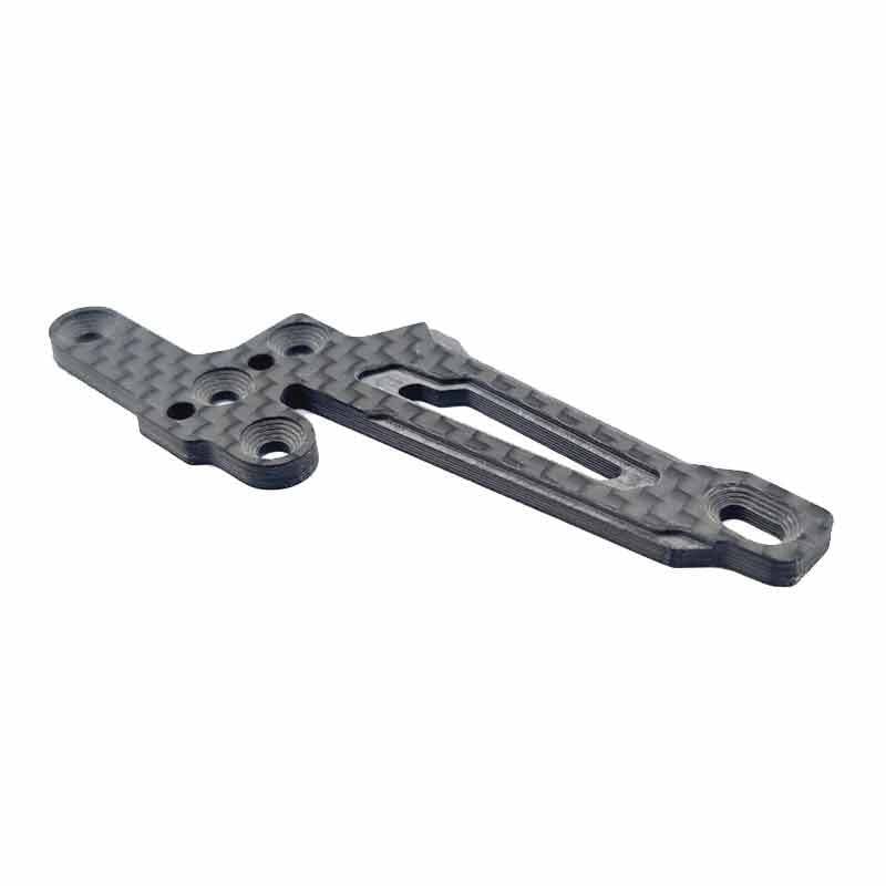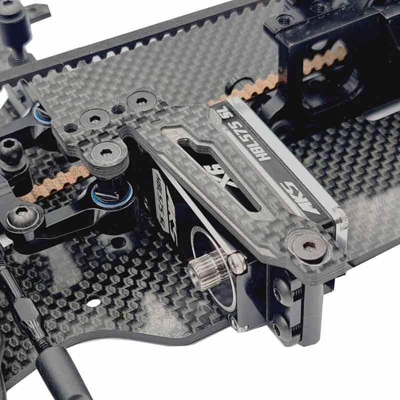GeoCarbonマウントは、ステアリングをシャーシから浮かせることができ、シャーシのたわみとの干渉をなくします。また、ベルクランクポストの下にシムを取り付け、ステアリングアームからシムを取り外すことで、ステアリングラック全体を下げることも可能です(バンプステアを維持するため)。