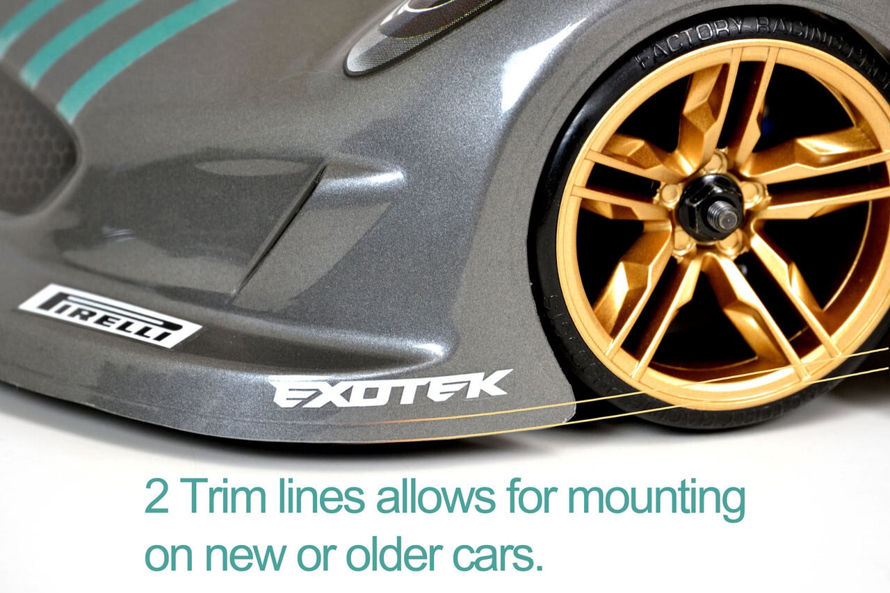 ボディ底面には2本のトリムラインが刻まれ、1本はロープロファイルショックタワー用、もう1本はAX800などのローボディマウント用となっています。